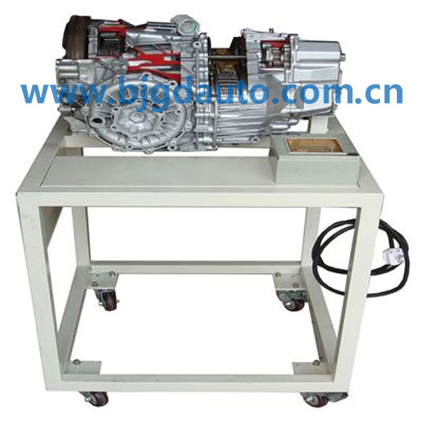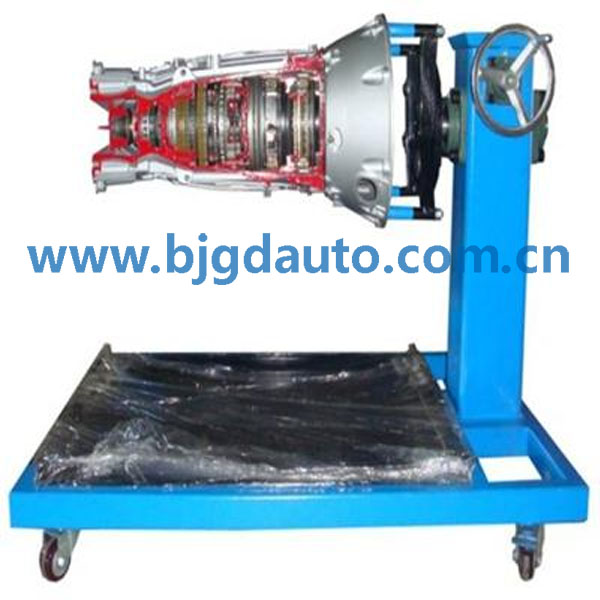 設備采用自動變速箱總成實物制作,變速箱的關鍵部位加以開放式解剖,解剖剖面進行精細分色。配置射燈使液力變矩器、輸入輸出軸、太陽輪、行星齒輪、電磁閥等內部結構清晰可見。利用本實驗臺可以使學員輕松、真實地了解變速箱機械系統的組成、各部件的外形、各機構彼此之間的連接關系,加深學生對變速箱機械系統組成和工作原理的理解,幫助學生理解抽象的控制理論。