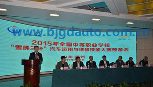 4月1日-3日,2015年全國中等職業學校汽車運用與維修技能大賽預備會在德州召開。教育部職成司劉杰處長、中國汽車維修行業協會孫守仁會長、山東省教育廳黨組成員徐曙光總督學、德州市董紹輝副市長、全國大賽裁判長、全國各省市職業學校代表等出席會議。