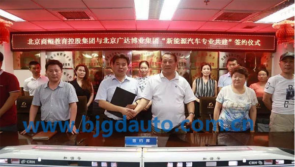 目前,在全國各層級職業類院校都在積極響應市場需求,開設汽車新能源專業,商鯤教育集團自2016年起也開設了新能源專業,面向社會招生。按照協議內容,商鯤教育集團負責新能源汽車專業的招生、教學等工作,北京廣達公司負責學生的教學實習、實訓,雙方共同做好新能源汽車專業的共建工作。我公司根據自身優勢,與商鯤教育資源互補、互利合作,建設一流的汽車新能源專業實訓基地。在滿足商鯤教育集團學生實訓實習的前提下同時也接納其他院校相關本專業學生的實訓實習服務。