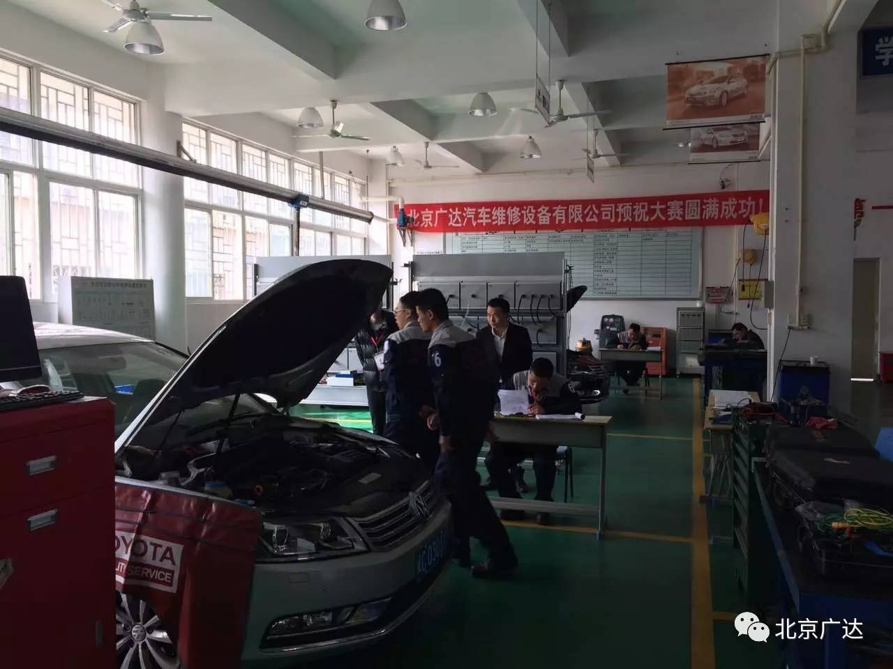 北京廣達做為此次大賽的贊助企業,做了題為“基于全信息化教學模式的流水線型新能源汽車實訓教學系統”的主題報告,與會老師對與這一主題的全新教學實訓系統給出了很高的評價和認同。流水線型BEV實訓系統(Flow Lined Vocational Practice System of BEV)簡稱FLVPS,由總計16個實訓工位構成。整車數量取決于院校實際需求,每一實訓工位的中心任務是由該工位目標機決定,一般情況下,每一工位的目標機必須能夠以車上使用條件運轉起來,以支撐實訓教學的操作。